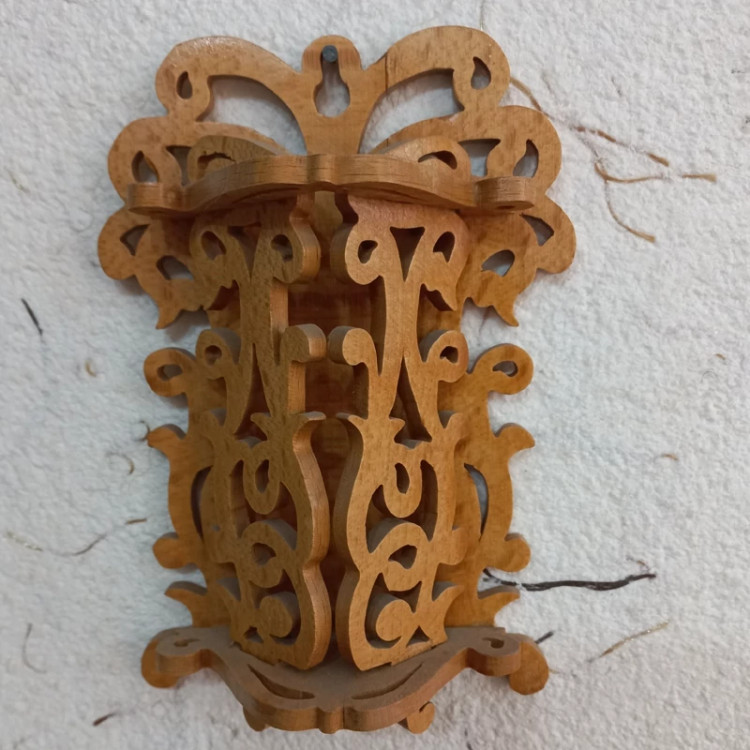 جا گلدانی بسیار زیبای مشبک کاری شده از جنس چوب راش مناسب برای هدیه دادن و استفاده در دکور منازل