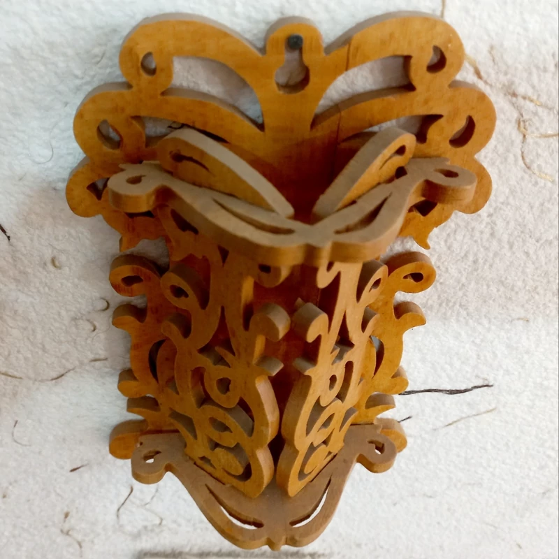 جا گلدانی بسیار زیبای مشبک کاری شده از جنس چوب راش مناسب برای هدیه دادن و استفاده در دکور منازل