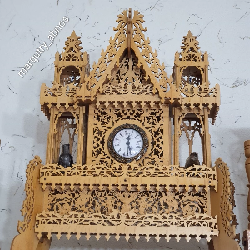 ساعت رومیزی چوبی بل تاور ساخت این اثر 2 ماه طول کشیده و کلا کار با دست انجام شده است ارسال با تیپاکس