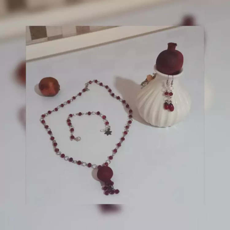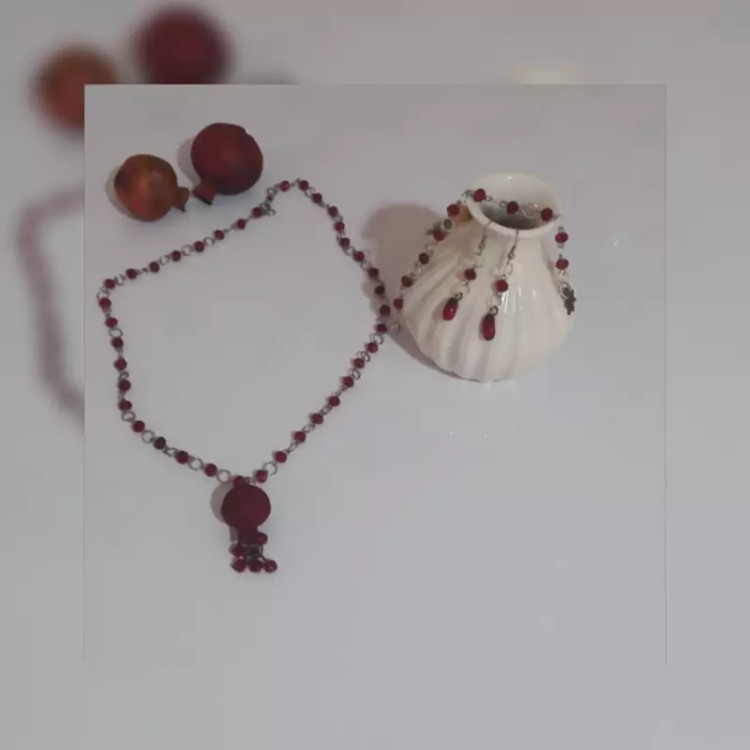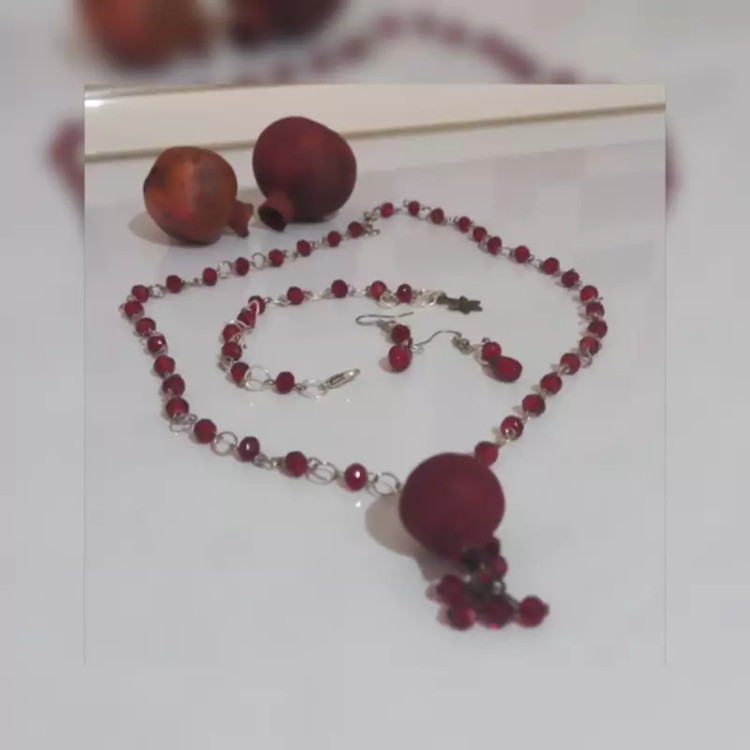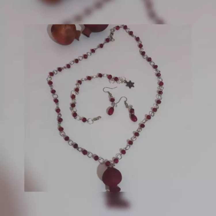 سرویس یلدایی اناری شامل گردنبند -گوشواره و دستبند