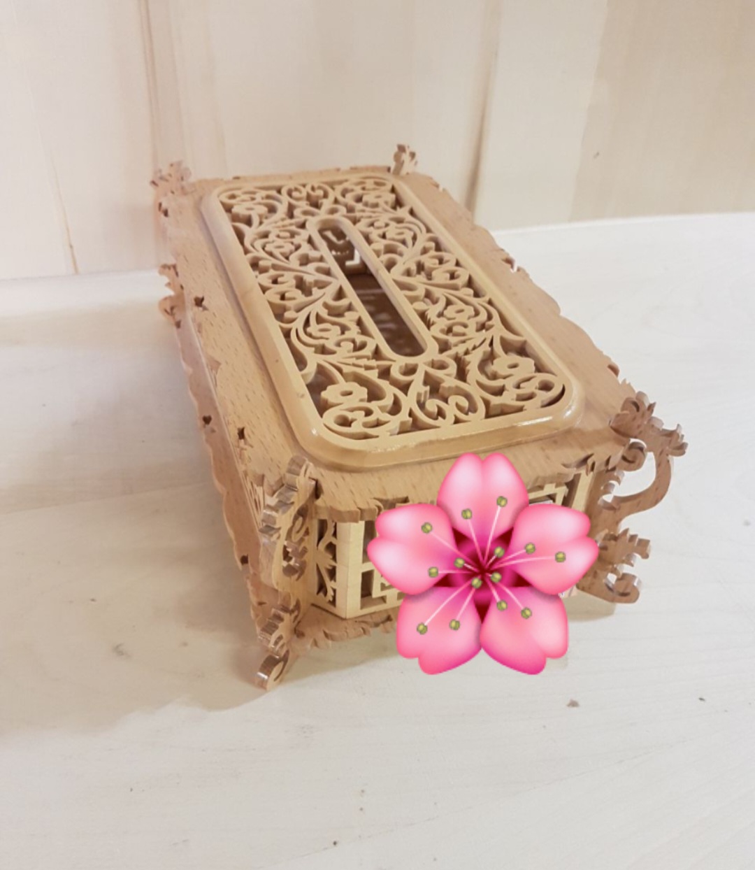 چوب آماده مشبک کاری جا دستمالی پایه دار همراه با طرح