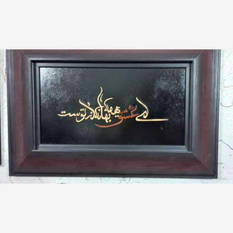 تابلو خطی معرق ای عشق همه بهانه از توست اندازه داخلی 20در 35 متریال چوب عناب و افرا