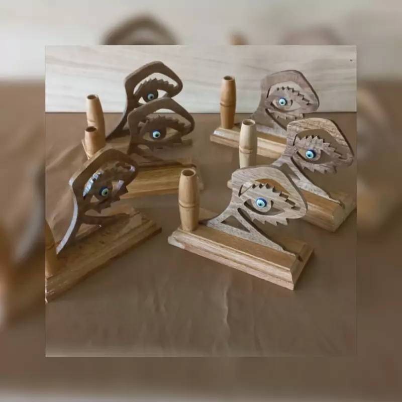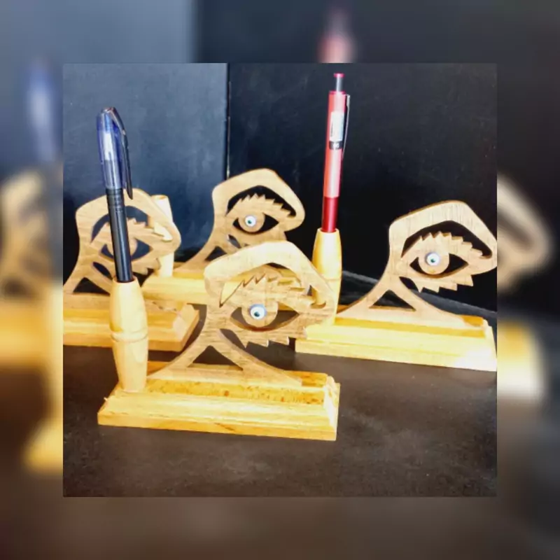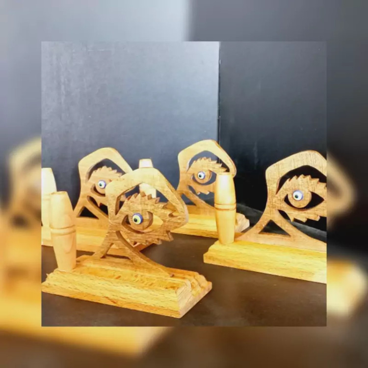 جاقلمی چوبی چشم نظر استفاده : دکور برای زیبایی میز کار جاقلمی هدیه مناسب برای دوستان عزیزتان پایه چوب راش طرح چشم نظر چوب گردو جای قلمدان چوب افرا ارتفاع کار12 سانتی متر دست ساز (کل مراحل کار با دست انجام شده است)