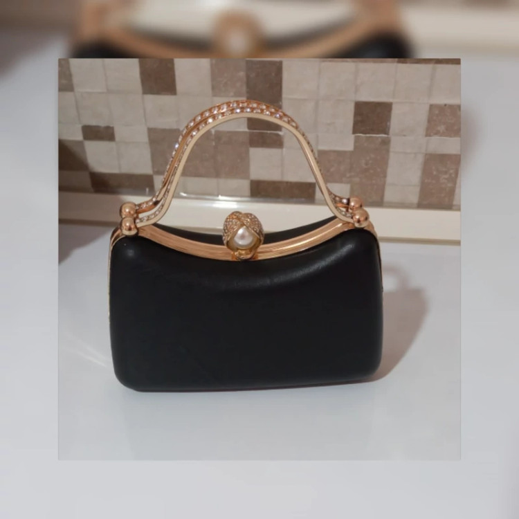 کیف دهانه قابدار طرح دامنی دسته نگین دار اندازه16*22 روکش چرم طبیعی بره پیگمنتی